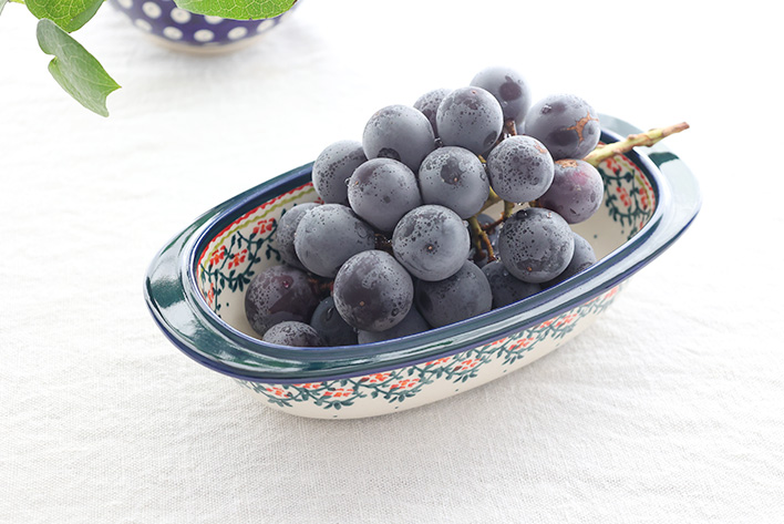 オーバルなフォルムがスタイリッシュなザクワディ社製のオーブン用の器です。両縁の部分に1cm程度の羽があり、熱くなったお皿をミトンで運ぶときにも抱えやすくなっています。丈夫で適度な深さを持ち、使い勝手も抜群。オーブン料理以外でも、メロン、スイカ、ぶどうなどをサーブするときにも活躍します。