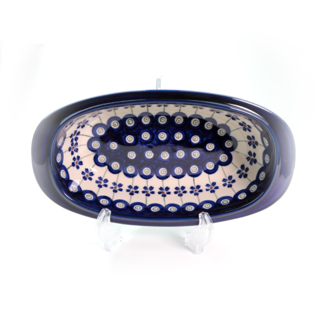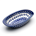 オーバルなフォルムがスタイリッシュなザクワディ社製のオーブン用の器です。両縁の部分に1cm程度の羽があり、熱くなったお皿をミトンで運ぶときにも抱えやすくなっています。丈夫で適度な深さを持ち、使い勝手も抜群。オーブン料理以外でも、メロン、スイカ、ぶどうなどをサーブするときにも活躍します。