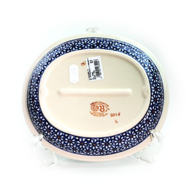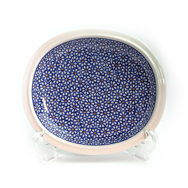 古くからポーリッシュポタリーではよく見られる花柄のスタンプで構成されたパターンデザインです。多くの製造元がこのスタンプを用いています。ザクワディ社のこの絵柄は、古くからある柄のひとつで、使い込むうちに愛着が湧いてくるところが大きな魅力になっています。