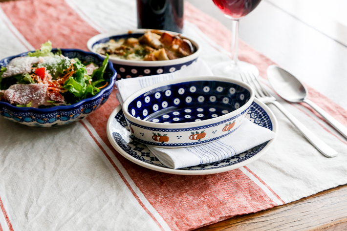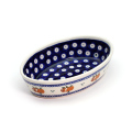ポーリッシュポタリーの伝統的な「ピーコックアイ」から派生したザクワディらしいクラシック柄のバリエーション。オレンジ色の果実は実はりんご。ポーランド人なら誰しも間違いなくそう答えます。素朴で温かみのあるパターンデザインです。