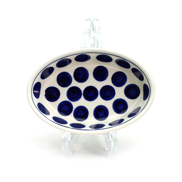 濃紺の単色使いのドット柄は、ポップで明るい印象です。カップやボウルなどの立体的なフォルムでは元気で可愛らしく、またプレートなどのフラットなフォルムではお洒落な雰囲気。シンプルなパターンデザインの持つ洗練を感じます。