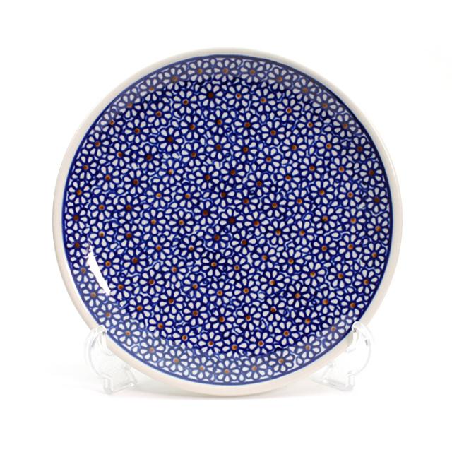 古くからポーリッシュポタリーではよく見られる花柄のスタンプで構成されたパターンデザインです。多くの製造元がこのスタンプを用いています。ザクワディ社のこの絵柄は、古くからある柄のひとつで、使い込むうちに愛着が湧いてくるところが大きな魅力になっています。