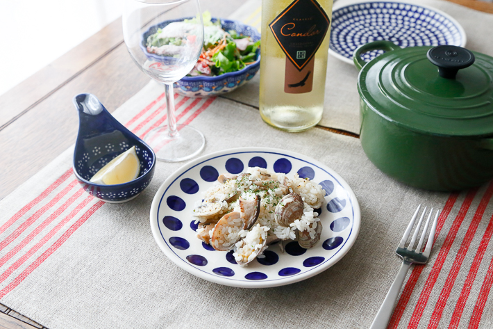 濃紺の単色使いのドット柄は、ポップで明るい印象です。カップやボウルなどの立体的なフォルムでは元気で可愛らしく、またプレートなどのフラットなフォルムではお洒落な雰囲気。シンプルなパターンデザインの持つ洗練を感じます。
