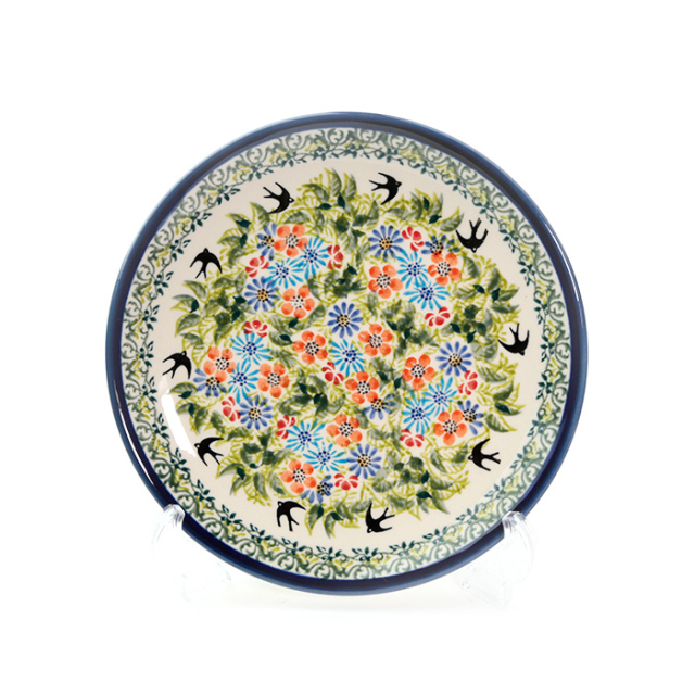 ザクワディのユニーク柄の中で、近年世界的に人気の高まっている柄として紹介されているパターンデザインです。生い茂る新緑の香りが漂ってきそうな色使いの中で、ツバメが飛びかっています。ツバメは、幸福を運んできてくれる鳥としてポーランドの人々から愛されており、この柄を大きく特徴付けています。