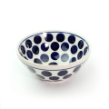 濃紺の単色使いのドット柄は、ポップで明るい印象です。カップやボウルなどの立体的なフォルムでは元気で可愛らしく、またプレートなどのフラットなフォルムではお洒落な雰囲気。シンプルなパターンデザインの持つ洗練を感じます。