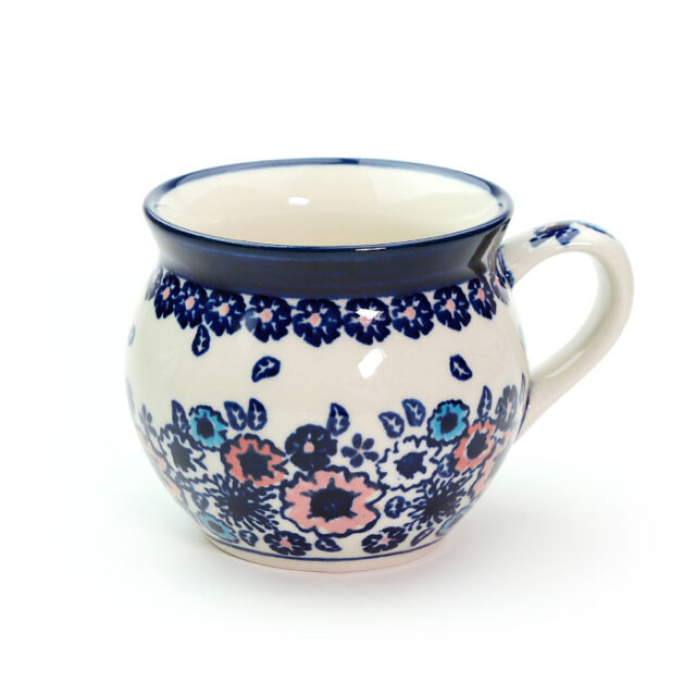 ぷっくりしたフォルムが特徴的なポーリッシュマグの大きなサイズがこれです。実用容量は250cc程度で、ミルクを沢山加えたカフェオレなど召しあがっていただけます。また、この形状は冷めにくいのも特長で、飲み口も大きく作られているのでスープやシチューなどスプーンを用いる場合にも使い易くなっています。