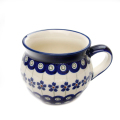 ぷっくりしたフォルムが特徴的なポーリッシュマグの大きなサイズがこれです。実用容量は250cc程度で、ミルクを沢山加えたカフェオレなど召しあがっていただけます。また、この形状は冷めにくいのも特長で、飲み口も大きく作られているのでスープやシチューなどスプーンを用いる場合にも使い易くなっています。