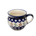 ぷっくりしたフォルムが特徴的なポーリッシュマグの大きなサイズがこれです。実用容量は250cc程度で、ミルクを沢山加えたカフェオレなど召しあがっていただけます。また、この形状は冷めにくいのも特長で、飲み口も大きく作られているのでスープやシチューなどスプーンを用いる場合にも使い易くなっています。
