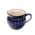 ぷっくりしたフォルムが特徴的なポーリッシュマグの大きなサイズがこれです。実用容量は250cc程度で、ミルクを沢山加えたカフェオレなど召しあがっていただけます。また、この形状は冷めにくいのも特長で、飲み口も大きく作られているのでスープやシチューなどスプーンを用いる場合にも使い易くなっています。