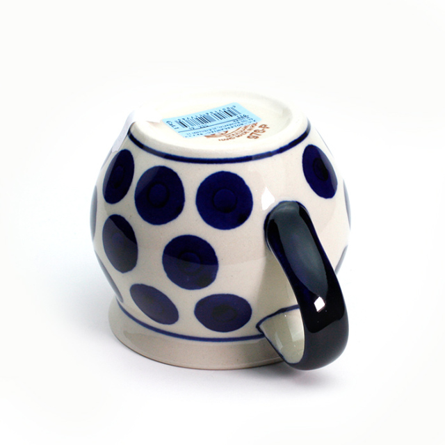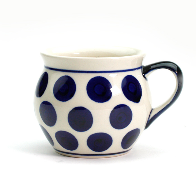 ぷっくりしたフォルムが特徴的なポーリッシュマグの大きなサイズがこれです。実用容量は250cc程度で、ミルクを沢山加えたカフェオレなど召しあがっていただけます。また、この形状は冷めにくいのも特長で、飲み口も大きく作られているのでスープやシチューなどスプーンを用いる場合にも使い易くなっています。