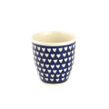 小さなハート型が彫られた海綿でひとつひとつスタンプされています。定評あるザクワディの深い藍色が効いた大人向けの甘すぎない愛らしさがとても好評なパターンデザインです。シンプルでありながら現代的でお洒落な雰囲気を持つ絵柄です。