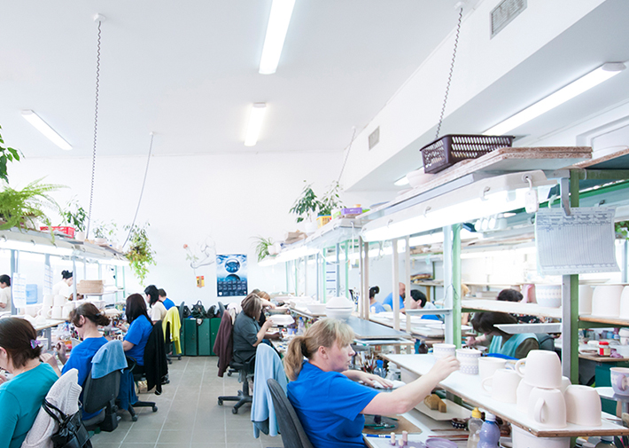 各工程で一つ一つの陶器に職人による手が加えられ、なかでも職人による絵付け作業は最も手間と時間がかけられています。