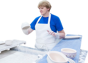 複雑な形は液状の粘土を石膏型に流し込み成形