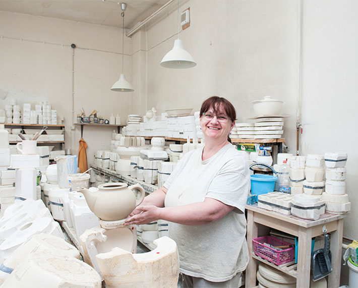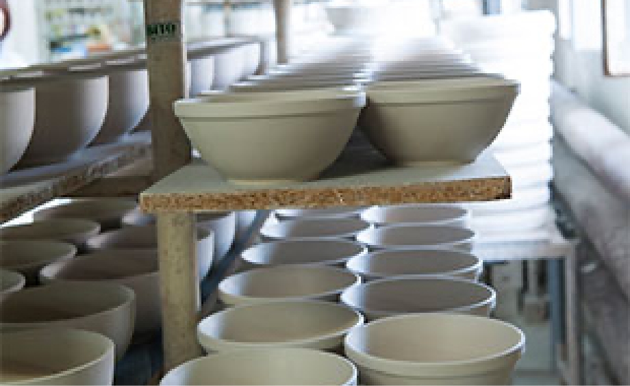 棒状や板状にして納品された粘土は、各製造元で陶器に姿を変えます。